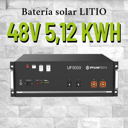 La Pylontech UF5000 es una batería LiFePO₄ (fosfato de hierro y litio) de alto rendimiento y larga vida útil, especialmente diseñada para almacenamiento de energía en instalaciones solares residenciales, comerciales e industriales. Ofrece alta densidad energética, ciclo de vida extendido y compatibilidad con los principales inversores híbridos del mercado.